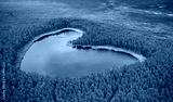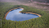 Aerial view over heart-shaped lake in the Parika bog nature reserve, Viljandi county, Estonia, Europe