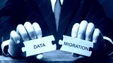 Businessman collects wooden puzzles with the words Data migration. Process of preparing, selecting, extracting data and transferring from one computer storage system to another.