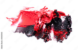 Two-tone lipstick, red and black, broken and crushed isolated on a white background.
