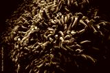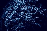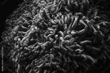 Underwater world. The polyps of the coral Euphyllia are shot in ultraviolet light. Macroshooting.