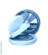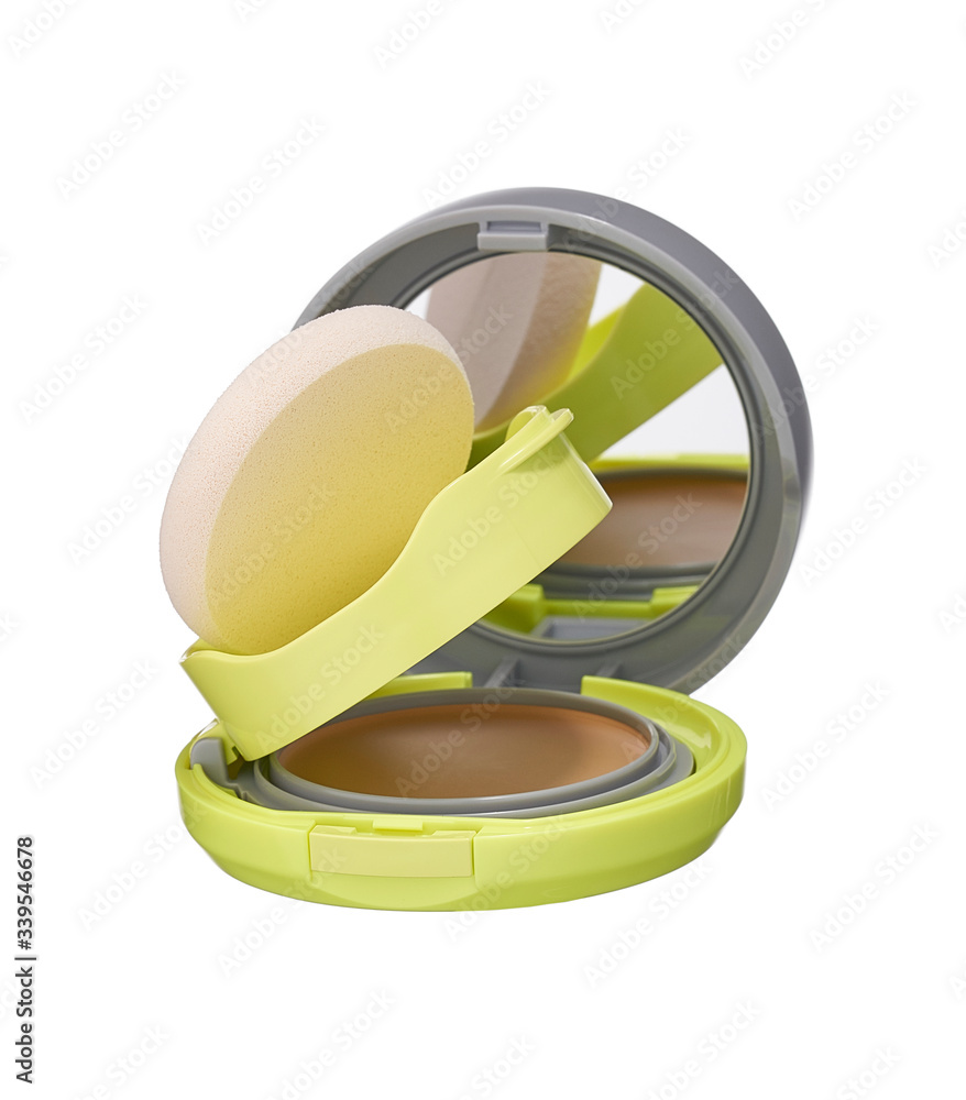 Compact powder, cosmetic accessory for skin beauty, isolated on white background