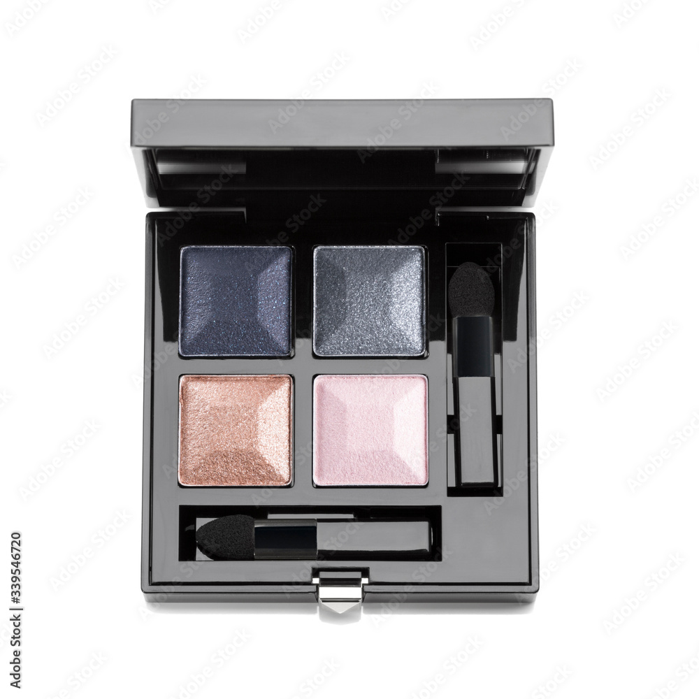 Multi color palette of trendy shades of eye shadow isolated on white background.