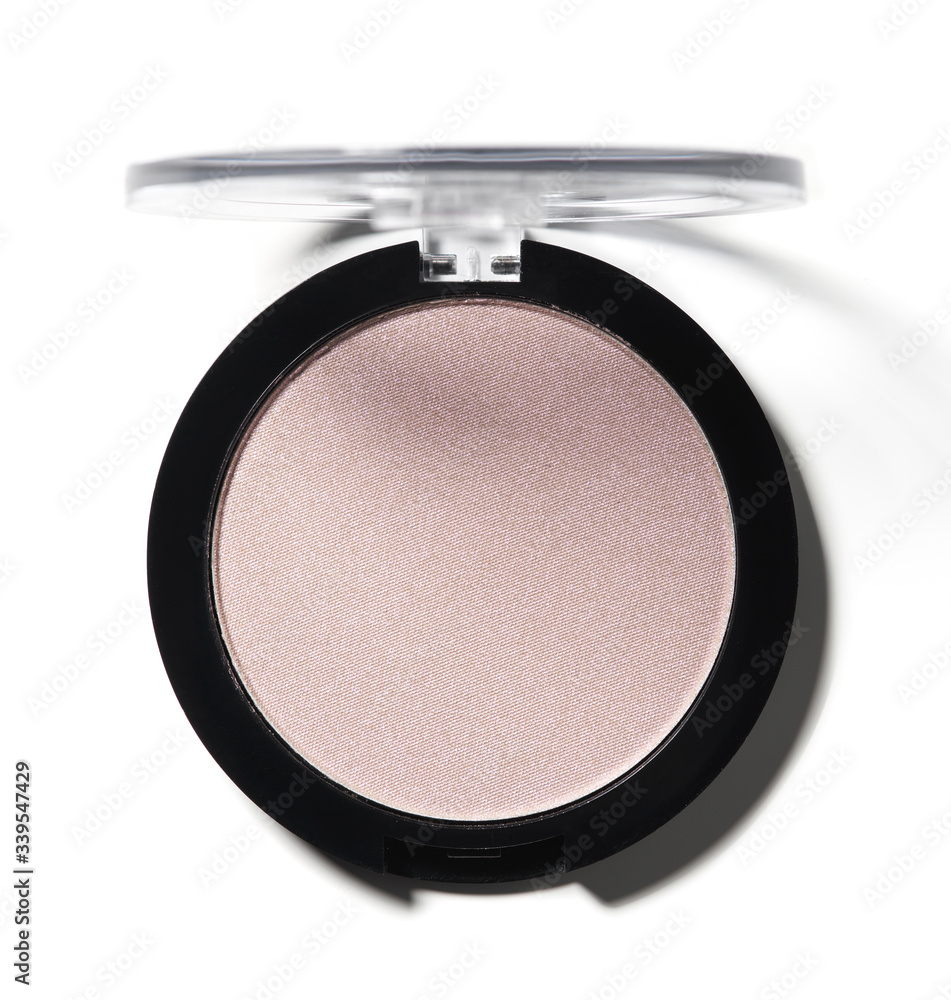Compact powder, cosmetic accessory for skin beauty, isolated on white background