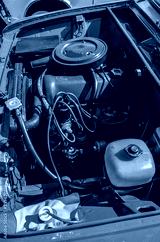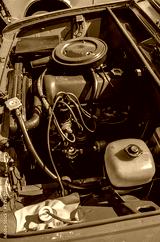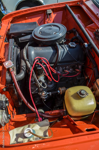 Under the hood of a retro soviet vehicle, engine of old car VAZ