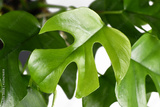 Single leaf of tropical 'Rhaphidophora Tetrasperma', a trendy house plant with small leaves with windows, also called 'Monstera Minima' Or 'Piccolo' isolated on white background