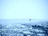 huge Palestinian flag blowing over the country, Palestine, West Bank, West Jordan Land