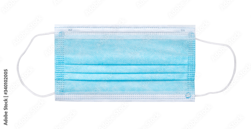 Blue medical face mask isolated on white. Flat lay. Clipping path included.