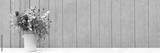 Bouquet of wildflowers in starm tin can vase on background blue wooden boards, country, rustic style. Concept Women's day, Mothers Day, Hello summer Copy space Front view Banner