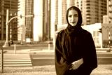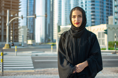 Portrait of beautiful middle eastern woman wearing abaya on the street