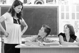 Angry teacher looking at scared boy
