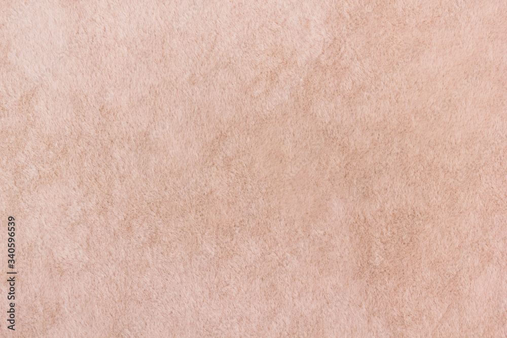 Light brown shaggy fabric for upholstery in macro. Abstract background from a plush fleece surface of soft tissue of light mustard color close-up. Flock fabric.