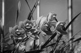 Close up of blooming orange orchids flower with green leaves