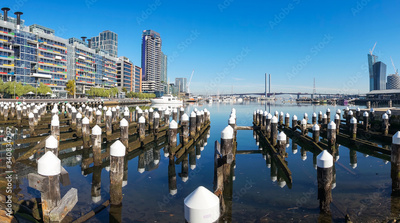 Buildings and waterfront property of Docklands suburb in Melbourne, Australia