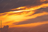 Beautiful sunset sky. Golden sunset sky with beautiful pattern of clouds. Orange, yellow, and dark clouds in the evening. Freedom and calm background. Beauty in nature. Peaceful and spiritual scene.