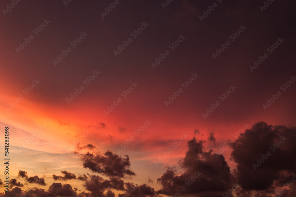 sunset over over dark rain cloudy in the evening