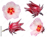 Roselle fruits and flower isolated on white, Hibiscus Sabdariffa or roselle fruits isolated on white background.
