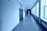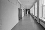 An empty school corridor stretching into the future. The concept of holidays, quarantine, evacuation