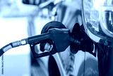 Car refueling on the petrol station with pumping gasoline fuel in car, diesel or gasoline being pumped into a motor vehicle car.
