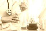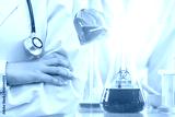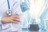 Doctor and microbiologist with vacuum tubes for samples with COVID 19 infection atypical pneumonia virus in laboratory