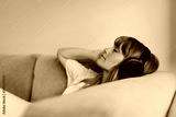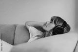 Woman listening to music during coronavirus quarantine on a couch