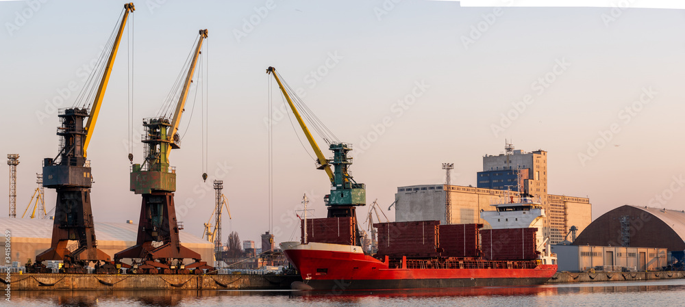 bulk cargo ship at the port quay on a beautiful sunny morning