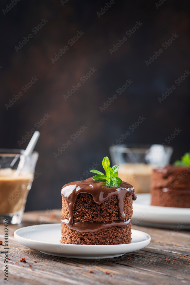 Chocolate mini cake on the wooden table