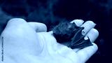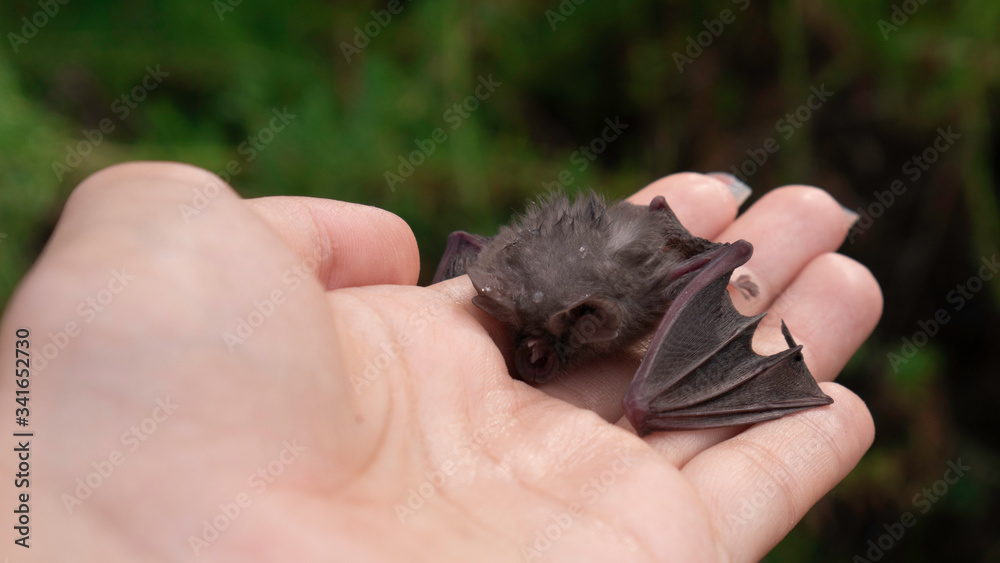 Heat stroke/heat exhaustion - Baby bat in the woman's hand drinks water from palm