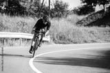 Mature bearded cyclist in sport outfit and protective helmet riding bicycle on fresh air. Sportsman leading active lifestyle with green nature around.