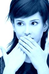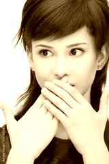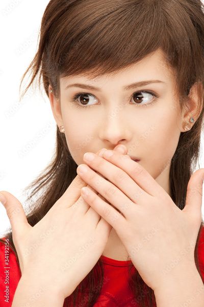 teenage girl with palms over mouth