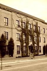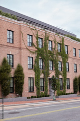 Red brick wall with vines