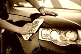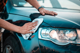 Shoot of a male hands carefully polishing his car with a microfiber cloth