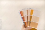 RAL sample colors catalogue on a beige background. palette of building paints in beige and brown tones. Repair and painting of walls.The choice of color of paint for repair.