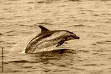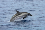 A jumping wild atlantic spotted dolphins, Stenella frontalis, sighted during a whale watching trip in front of the coast between Pico and Faial, in the western Açores Islands.