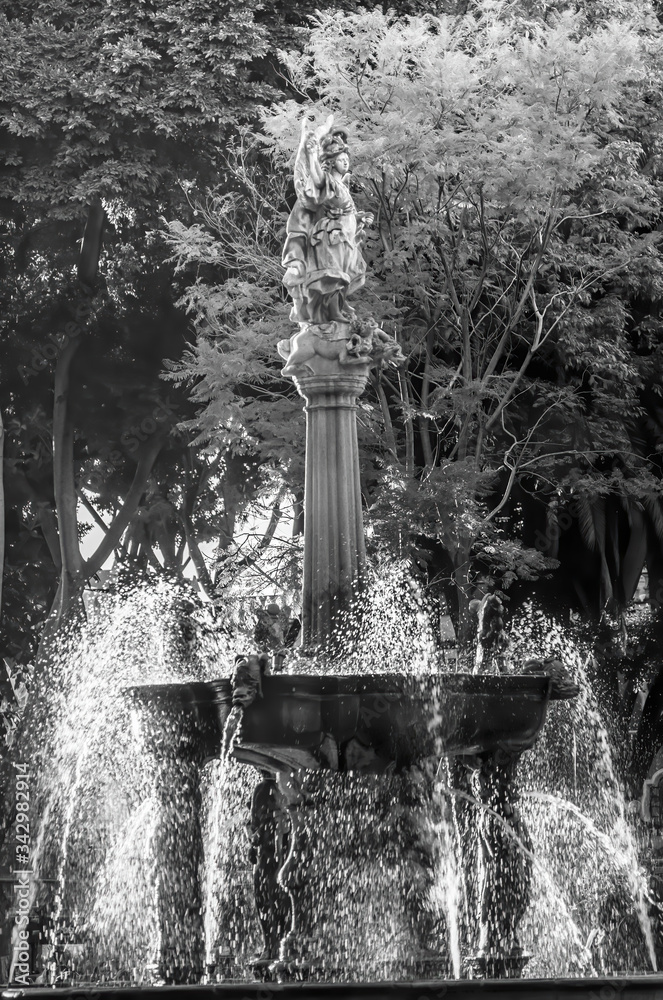 Black and White Arcangel Fountain Zocalo Park Plaza Puebla Mexico