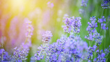 Beautiful spring background. Selective focus. Shallow depth of field. Lavender bushes closeup on sunset.