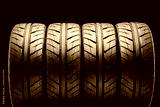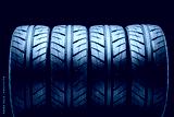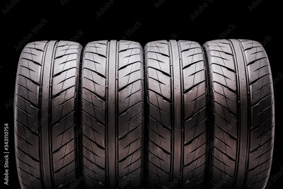 four sports tires for the summer season on a black background, isolate. for passenger cars , tuning and spare parts