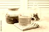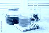 Bael fruit juice or quince tea and dried bael sliced fruit on light gray background. Thai or Asian healthy drink. Bael is helping the body to resist catching a cold