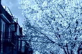 White Magnolia Tree during Spring next to Beautiful Homes in Astoria Queens New York