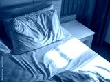 Bed Mattress and Pillows Mess up Bedroom with morning sunlight