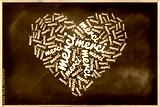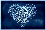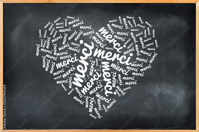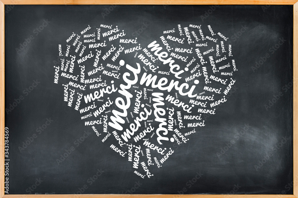 Nuage de mots merci avec un cœur, sur tableau noir, ardoise
