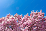 Beautiful Pink Magnolia Tree and a Blue Sky Spring Background