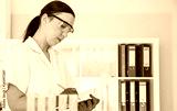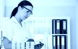 Laboratory assistant analyzing a sample