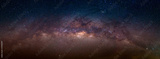Panorama view universe space shot of milky way galaxy with stars on a night sky background.