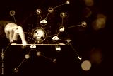 Hand touching to tablet and virtual artificial intelligence with cloud technology transformation . Cloud technology management big data include business strategy , customer service.