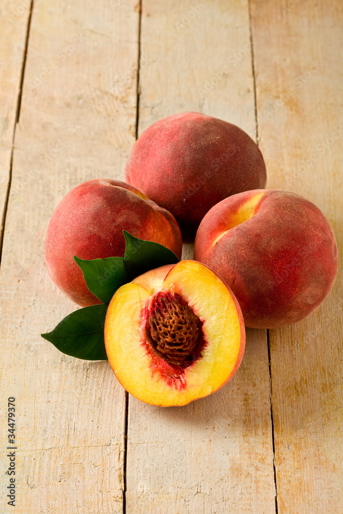 Pesche su tavolo di legno