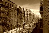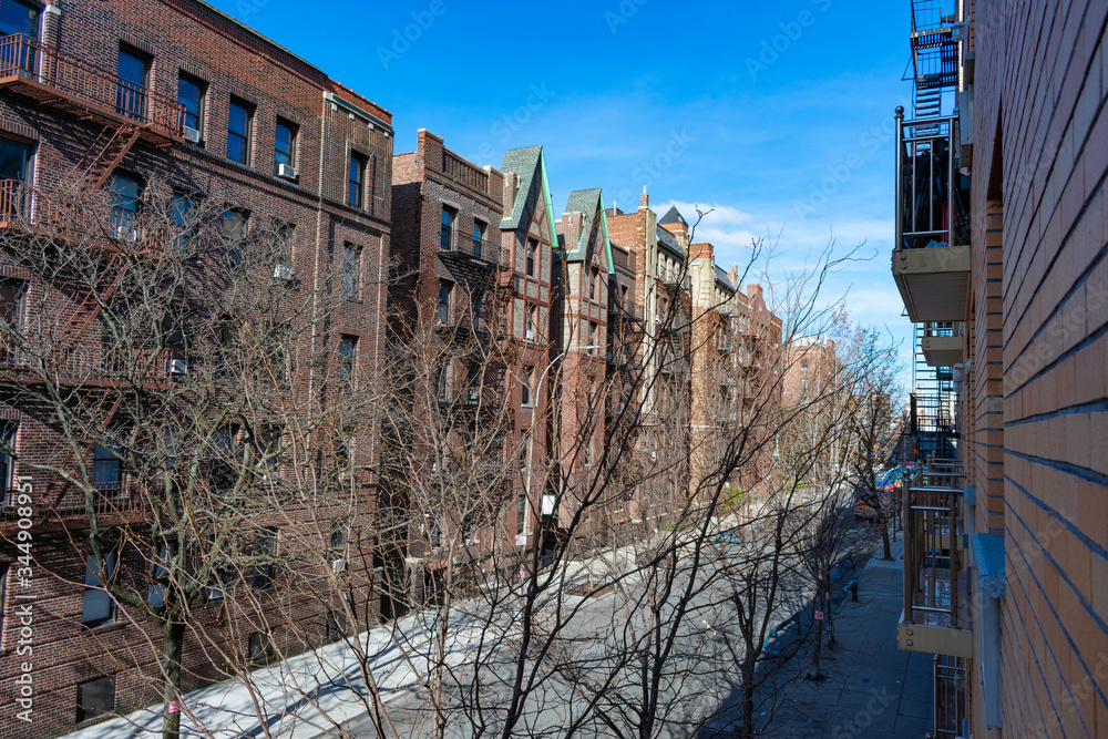 Row of Old Brick Residential Buildings on an Empty Street in Astoria Queens New York