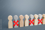 Line of people with red X. Loss of jobs and massive staff employees job cuts. Reducing staff to maintain business. Work layoffs due pandemic quarantine. Far-reaching consequences of crisis lockdown
