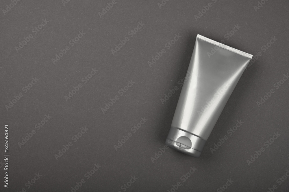 Silver grey tube of cream or lotion on table