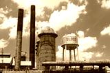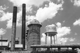 Sloss Furnaces National Historic Landmark, Birmingham Alabama USA, water tower, furnaces and smoke stacks, blue sky with clouds