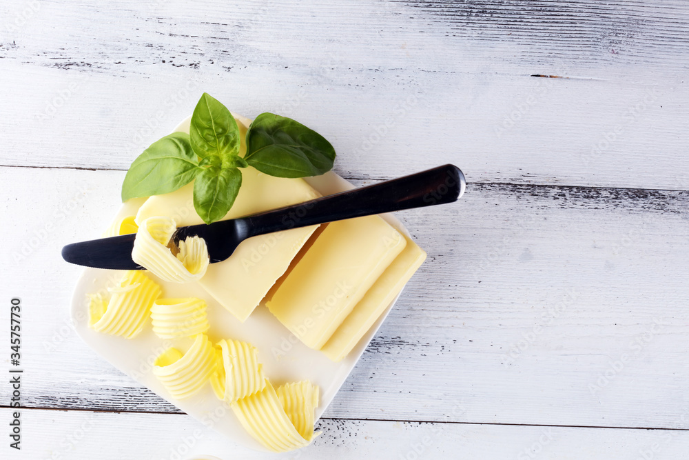 butter swirls. margarine or spread, fatty natural dairy product. High-calorie food for cooking and eating